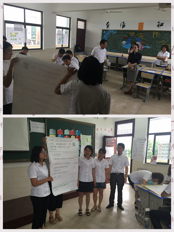 In final stage of "team building", teachers have formed the tree diagram of "how to make Shuanglin students show sunshine and confidence", providing information source for the next "collective wisdom and efforts" module. All teams recognized important and emergent sub topics, conducted "brainstorm" again, conducted obstacle analysis and put forward feasible solutions. CEO Wang and president Lou also participated in these teams in an active stance and provided instructions occasionally, making the training activity enter the second climax. All teams analyzed profit matrix, and formulated stage action plan. CEO Wang and president Lou evaluated action plan of all teams, provided instructions, and put forward specific requirements on how to conduct practical work for the next step.