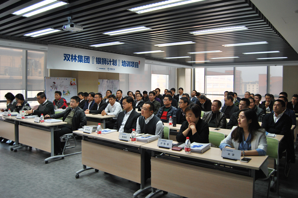 The closing ceremony for the 3-month factory head project under Silver Lion Program of Shuanglin Group was held on December 11.The following people were present in the ceremony: General Manager Shan, Deputy General Manager Chen, Deputy General Manager Qian, Shuanglin Education Strategy Executive Director Wang, Human Resource Center Director Zhao, Deputy General Manager Peng from Haojun Leadership Development Center, trainees, etc.