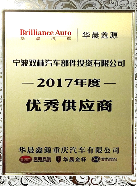 The honor earned by Shuanglin Auto Parts Investment Co., Ltd. marks new start for follow-up cooperation between Shuanglin Auto Parts Investment Co., Ltd. and Brilliance Auto with respect to new products and new projects, and makes a contribution to business growth for Shuanglin Auto Parts Investment Co., Ltd. in 2018.
