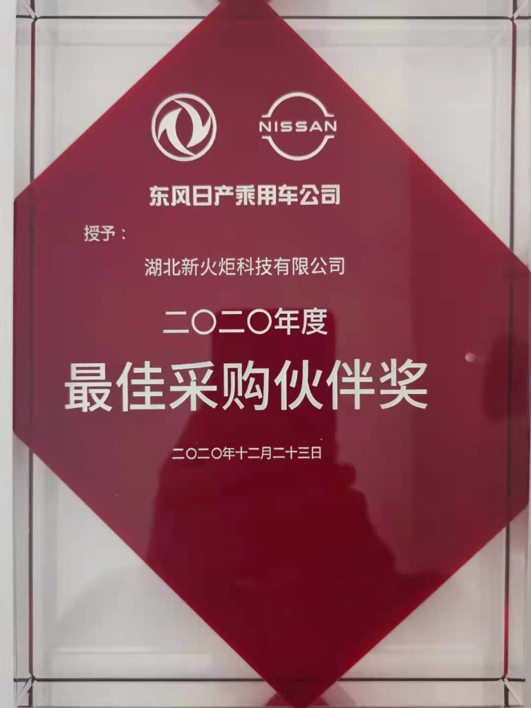 双林新火炬荣获东风日产2020年度最佳采购伙伴奖
