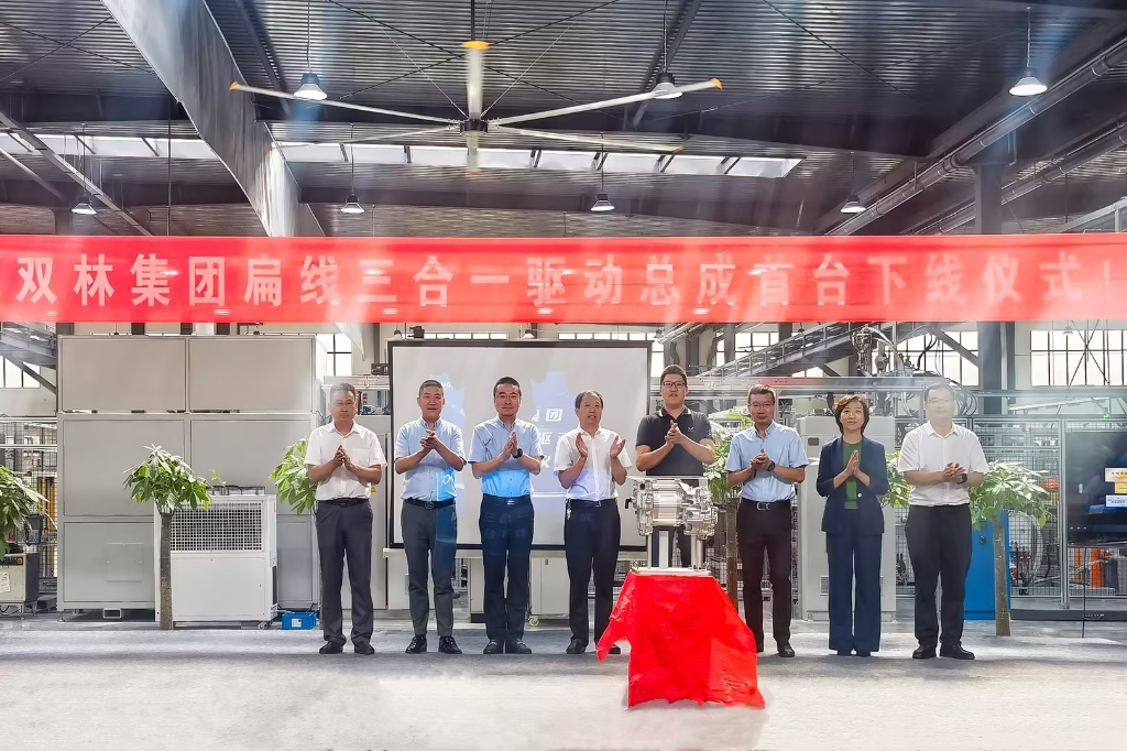 9月6日上午,双林扁线三合一驱动总成首台下线仪式在山东双林新能源科技有限公司新厂区隆重举行。作为双林电驱动业务发展中的战略产品,三合一扁线电机在相同的电机体积下,能够提供更高的电机功率,不仅用材少、成本低、噪声低,而且温度性能更好,进一步提升新能源汽车驱动系统的适配性、稳定性、一致性,此次扁线三合一驱动总成首台下线标志着双林在电驱动产品领域取得了阶段性成果。