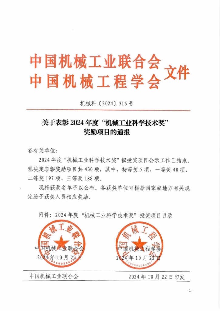 双林模具喜获2024年度“中国机械工业科学技术进步奖”